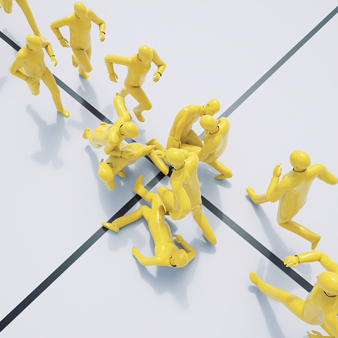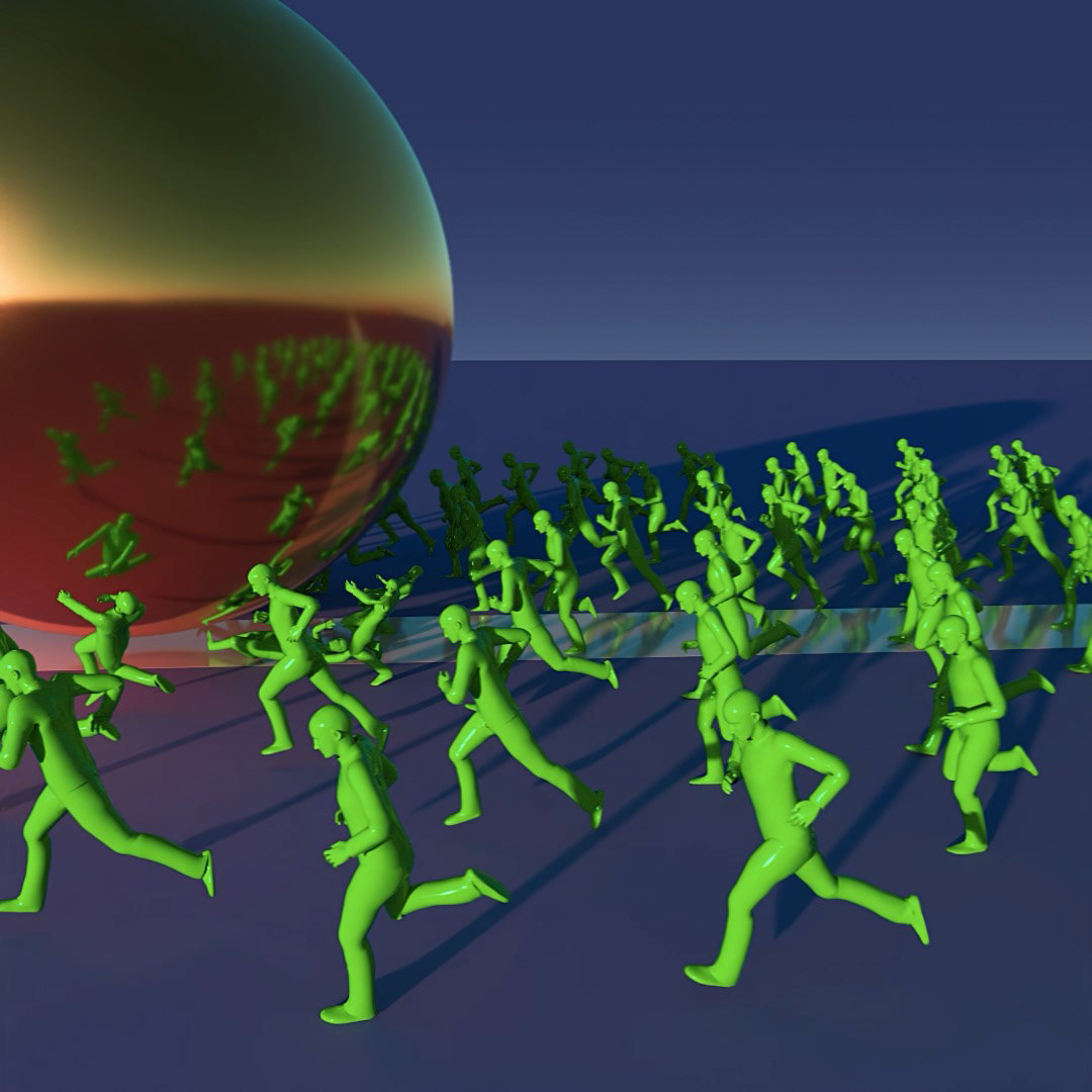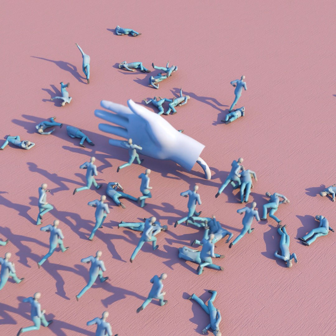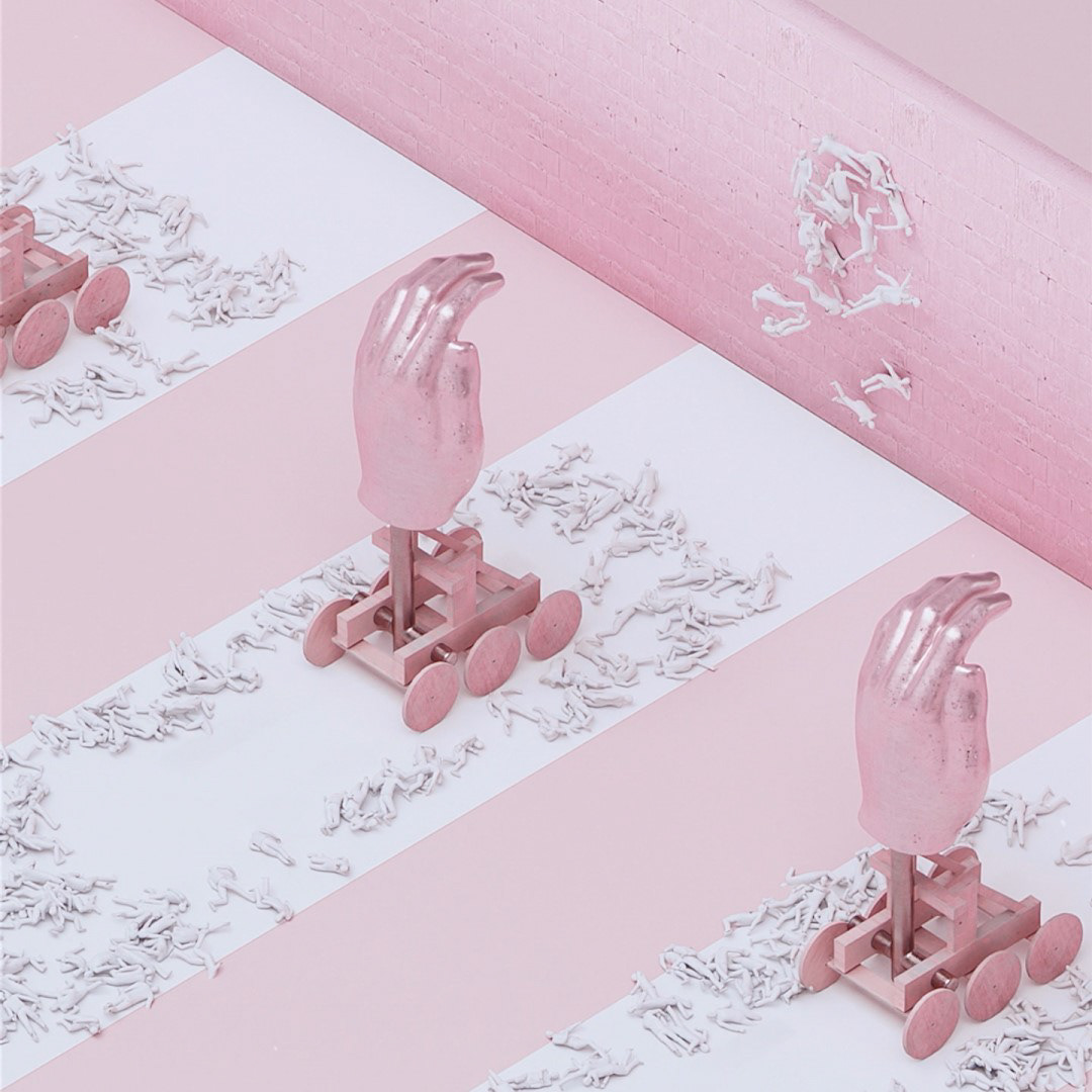 Discover a world of playful chaos and serene absurdity in "Miniature Mayhem." Through a creative blend of Houdini's crowd tools, volumes, shaders, and particles, this series of still frames captures fleeting animations that playfully dance on the edge of the surreal. Pastel hues and minimalistic compositions invite you to explore these tiny moments of animated wonder.