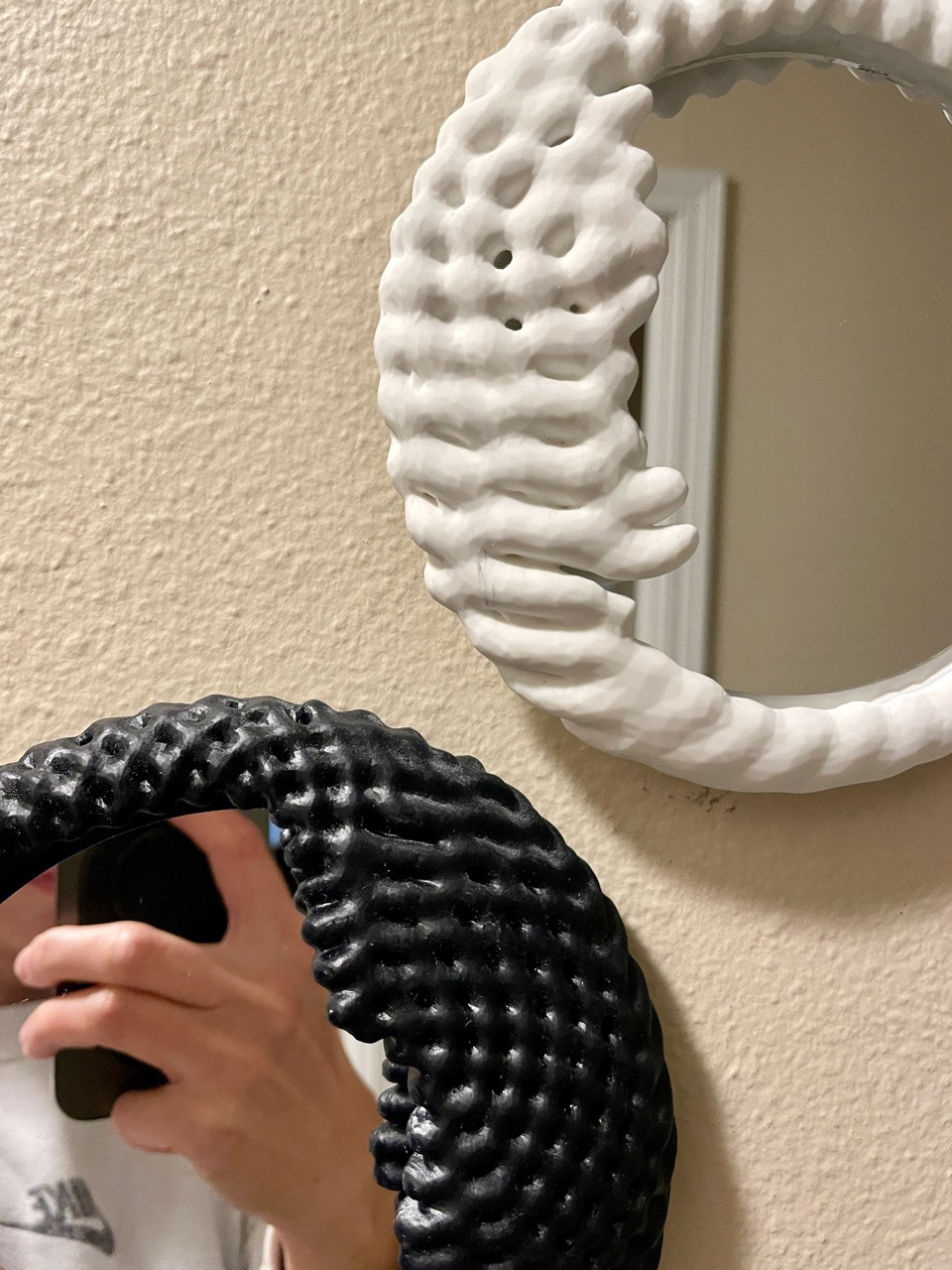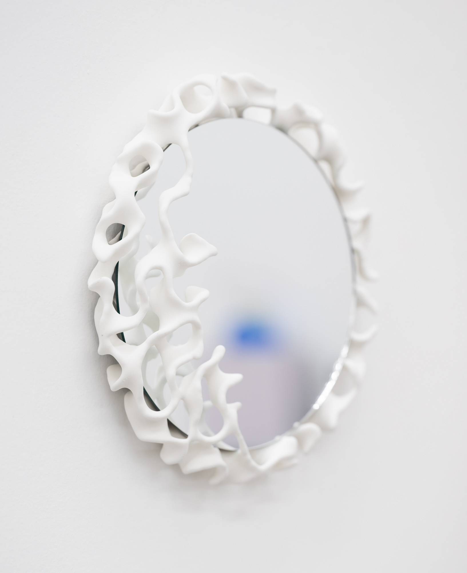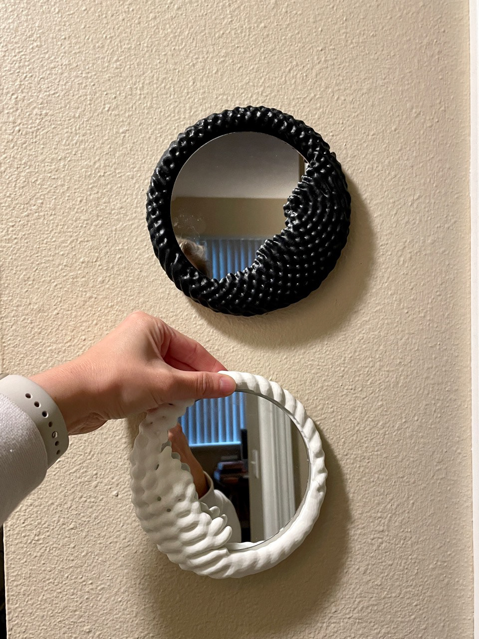 Unleashing the fluid poetry of motion, this project harnesses the mesmerizing dance of liquid forms around a spherical mirror-inspired collider. Each dynamic collision is a canvas, transformed into an organic, 3D-printed masterpiece, shaping a mirror frame that echoes the artistry of fluid dynamics and the elegance of unconventional design.